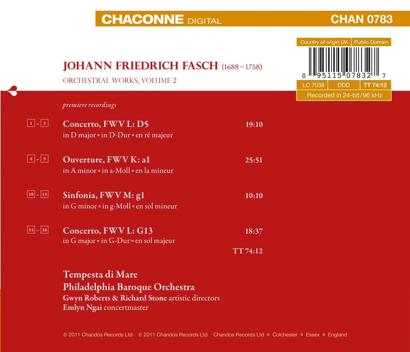 ChandosFasch: Orchestral Works Vol 2 / Tempesta Di Mare Philadelphia Baroque Orchestra