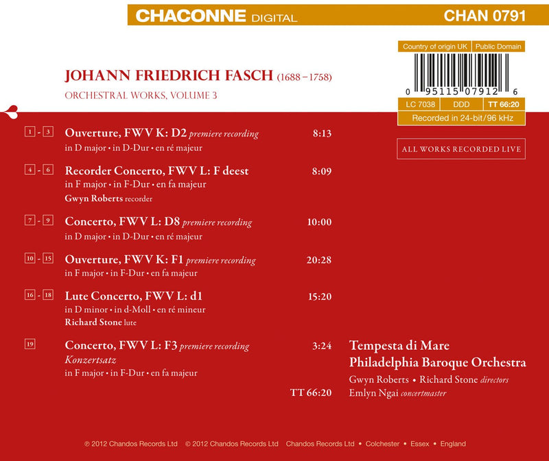 ChandosJohann Friedrich Fasch: Orchestral Works, Vol. 3