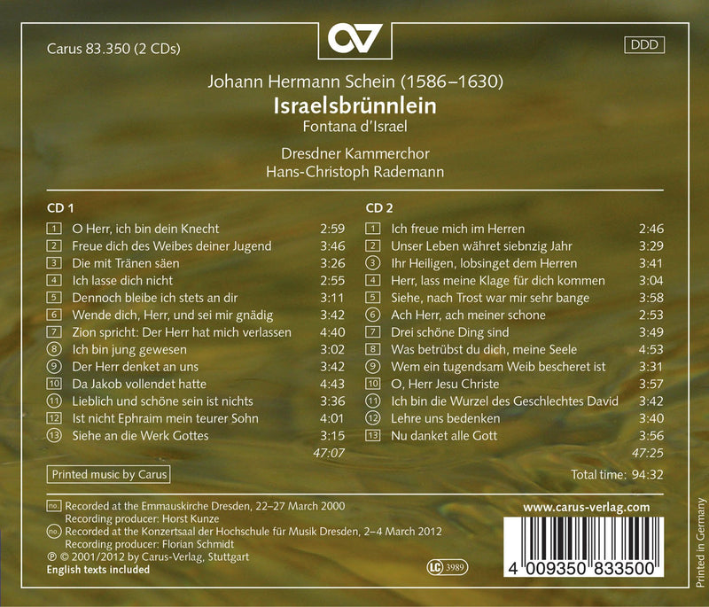 CarusSchein: Israelsbrunnlein / Rademann, Dresden Chamber Choir