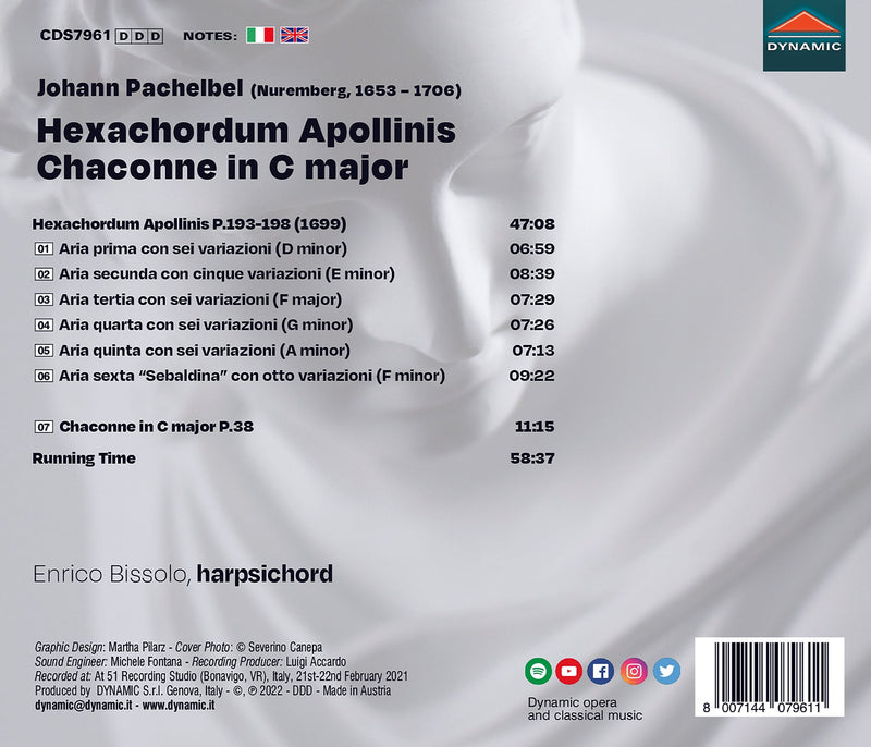 The first disc also includes a first recording: the Ciaccona in G. It has the same ground bass as the first eight bars of the aria from Bach's Goldberg variations. It has been preserved in fragmentary form and is played here in a reconstruction of the missing parts by Michael Belotti.