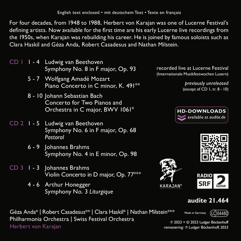 For the first time; this edition makes available Herbert von Karajan's previously unpublished early live recordings from the Lucerne Music Festival -...