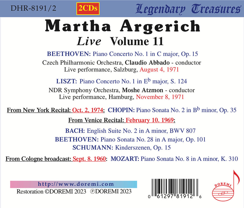 DoremiMartha Argerich Live, Vol. 11: Concerti, Suites, Sonatas & Szenen