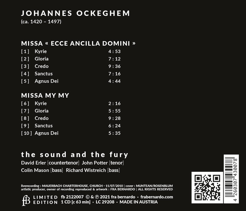 This is The Sound and the Fury's second album with masses by Johannes Ockeghem. The composer develops his art from the contrast...