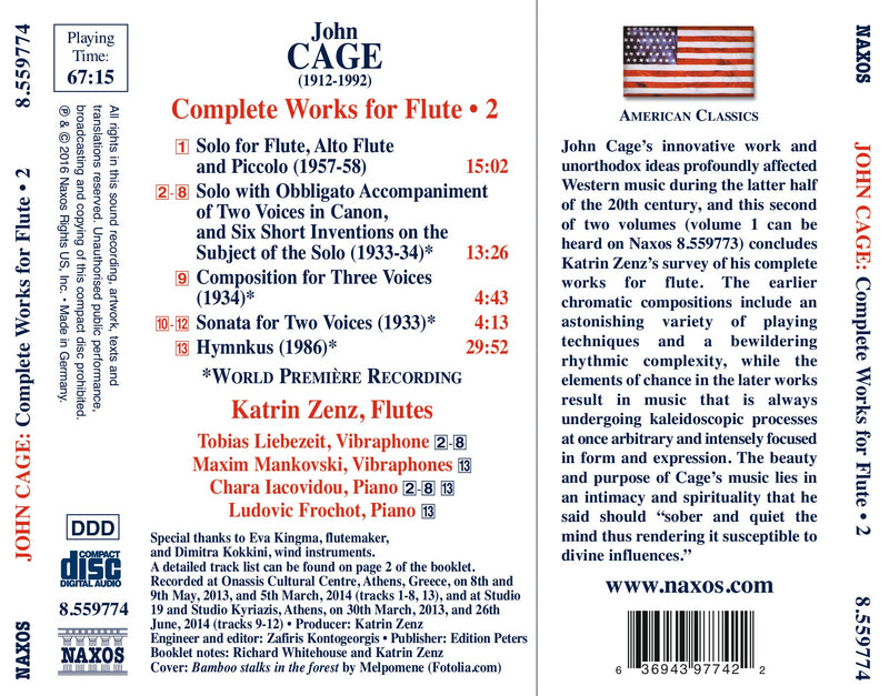On SaleNaxosWorks for Flute (Complete), Vol. 2 – Solo for Flute, Alto Flute and Piccolo / Sonata for Two Voices / Hymnkus / Solo with Obbligato Accompaniment / Composition for Three Voices