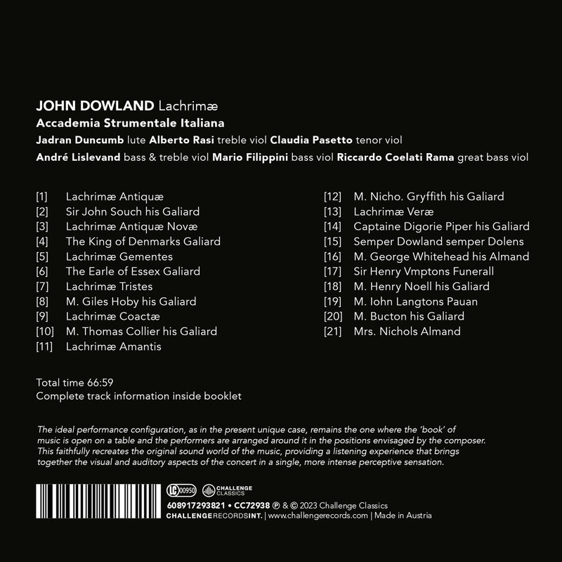 Challenge ClassicsDowland: Lachrimae / Duncumb, Rasi, Accademia StrumentaleAlberto Rasi and his prestigious Accademia Strumentale continue their journey through the masterpieces of the European Baroque music. Here they join forces...