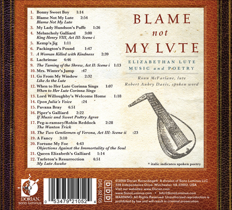 Sono LuminusBlame Not My Lute: Elizabethan Lute Music and Poetry / McFarlane, Aubry Davis