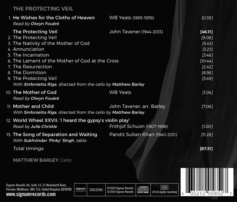 Signum ClassicsTavener: The Protecting Veil / Barley, Sinfonietta Riga“Transcendent With Awesome Majesty”. John Tavener wrote these words above the opening cello notes of The Protecting Veil, immediately communicating the scale...