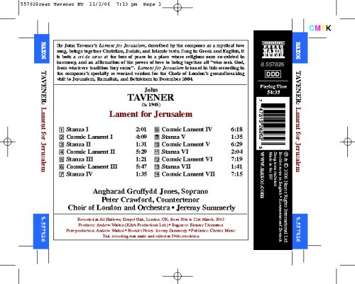 On SaleNaxosTavener: Lament For Jerusalem / Summerly, Et AlSir John Tavener describes the Lament for Jerusalem as a mystical love song. The Lament brings together Christian, Judaic, and Islamic texts...