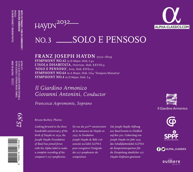AlphaHaydn 2032, Vol. 3: Solo e pensoso / Antonini, Il Giardino Armonico