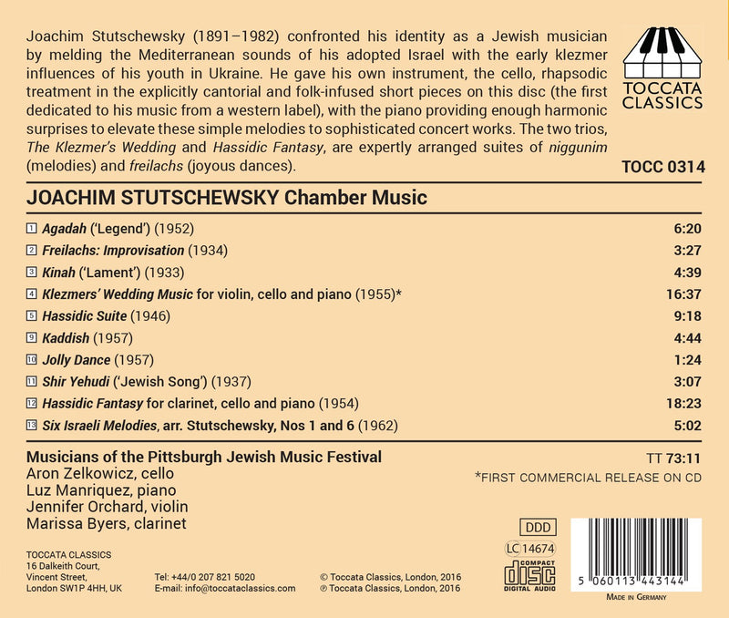One of a group of Russian-born composers which is now being recognized as the New Jewish School, Joachim Stutschewsky (1891-1982) is featured...