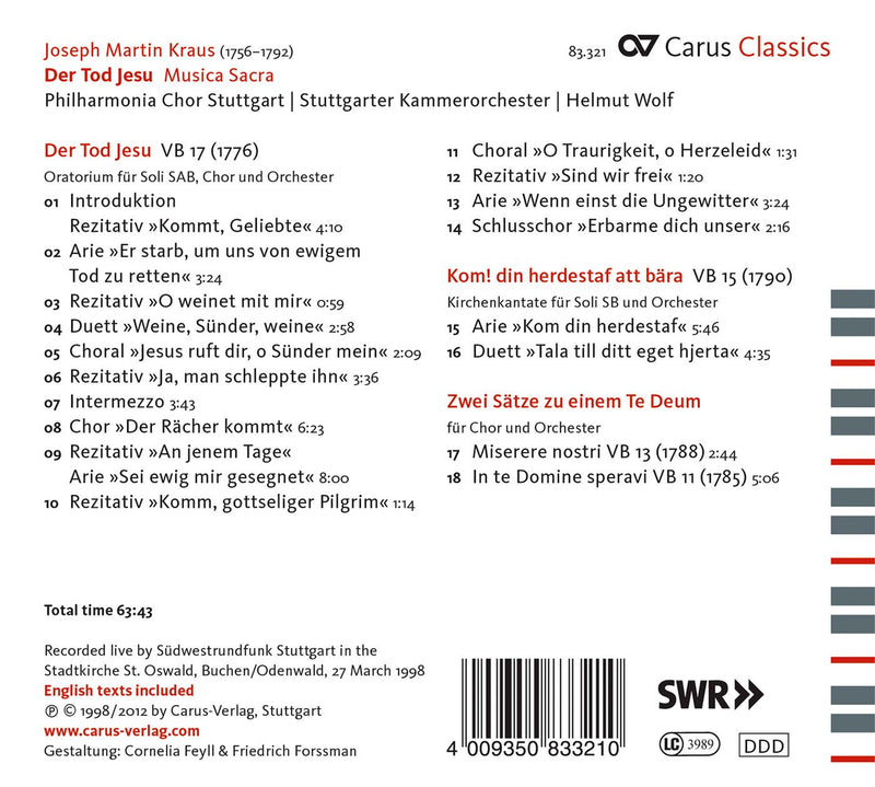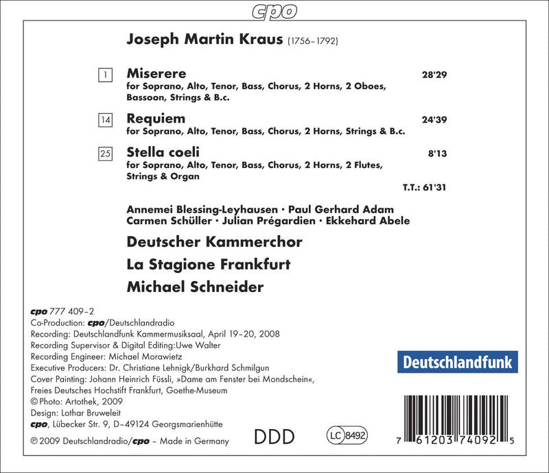 CPOJoseph Martin Kraus: Miserere; Requiem; Stella Coeli
