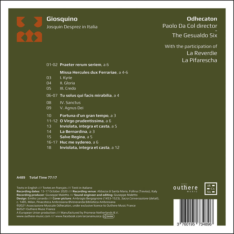 ArcanaGiosquino: Josquin Desprez in Italia / Da Col, La Pifarescha, La Reverdie, Gesualdo Six, Odhecaton