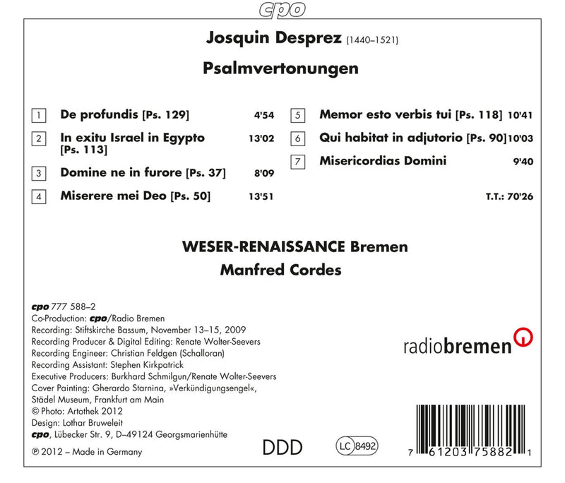 CPOJosquin Desprez: De Profundis; Motets / Cordes, Weser Renaissance