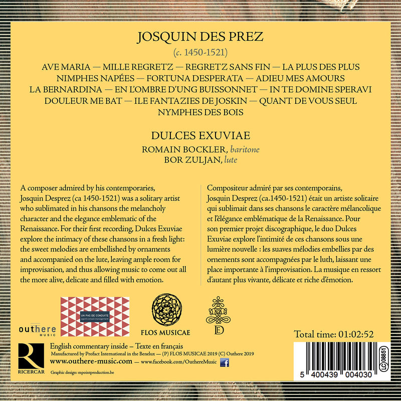 A composer admired by his contemporaries, Josquin Desprez (ca 1450-1521) was a solitary artist who sublimated in his chansons the melancholy character...