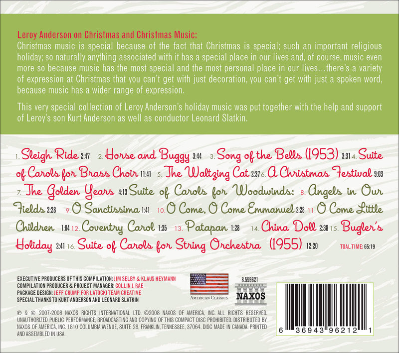 It's hard not to like Leroy Anderson, a skilled orchestral craftsman with a rich supply of clever ideas, an ingratiating musical imagination,...