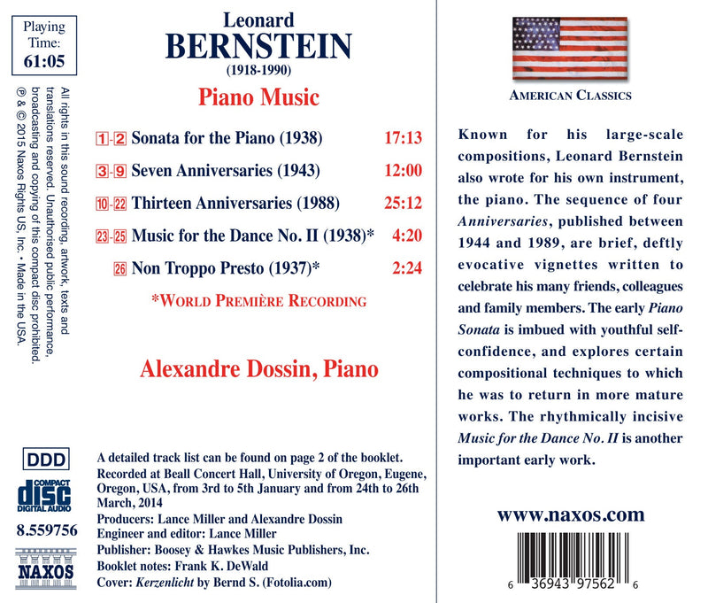 This disc collects three of Leonard Bernstein’s very few examples of chamber music. Although written at the onset of his career, the...