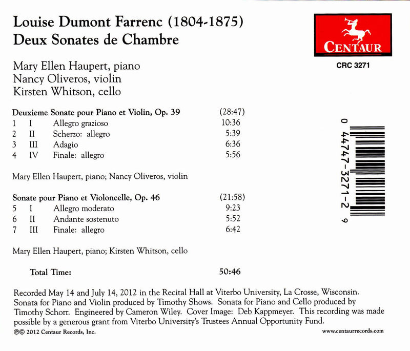 Centaur RecordsFarrenc: Deux Sonates de Chambre