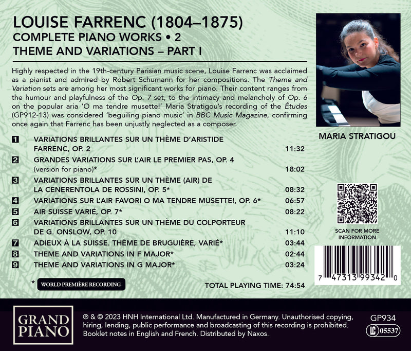 Grand PianoFarrenc: Complete Piano Works, Vol. 2 - Themes & Variations, Part I / Maria Stratigou