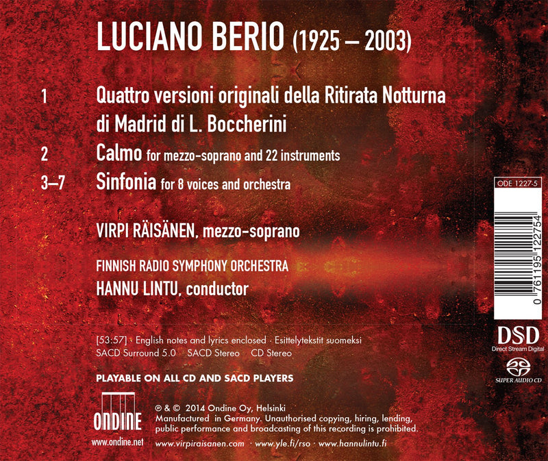 OndineBerio: Sinfonia, Calmo, Ritirata Notturna Di Madrid / Lintu, Finnish Radio Symphony