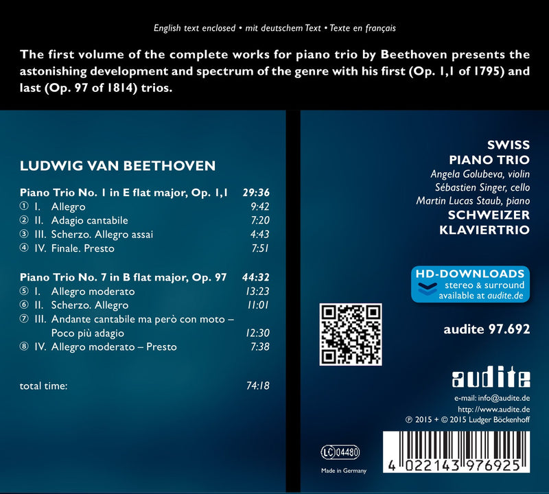 Audite MusikproduktionBeethoven: Complete Works for Piano Trio, Vol. 1 / Swiss Piano Trio