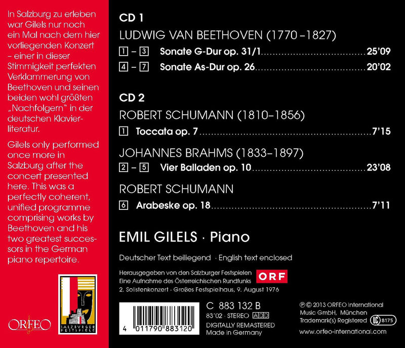 OrfeoBeethoven: Sonaten Op. 26, Op. 31/1; Schumann: Toccata; Arabeske; Brahms: Vier Balladen