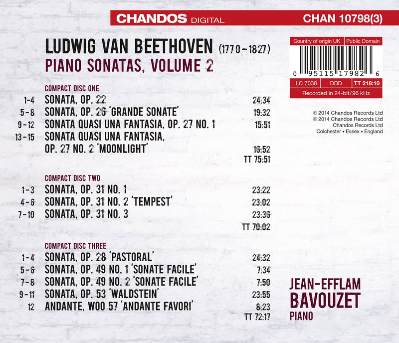 ChandosBeethoven: Piano Sonatas Vol 2 / Bavouzet