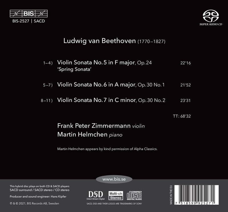 BISBeethoven: Violin Sonatas, Vol. 2 / Zimmermann, Helmchen