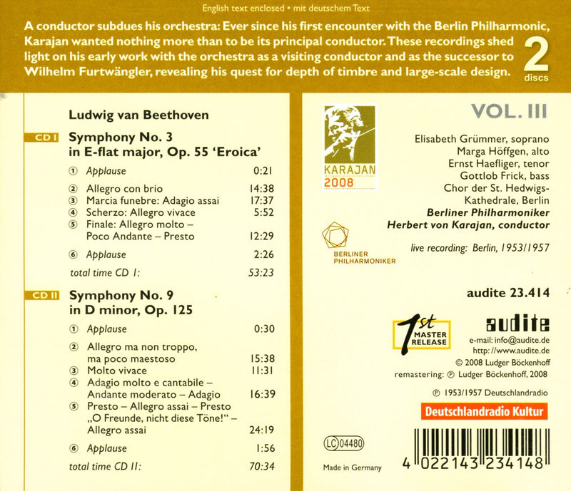 Audite MusikproduktionHerbert Von Karajan Vol 3 - Beethoven: Symphonies No 3 & 9