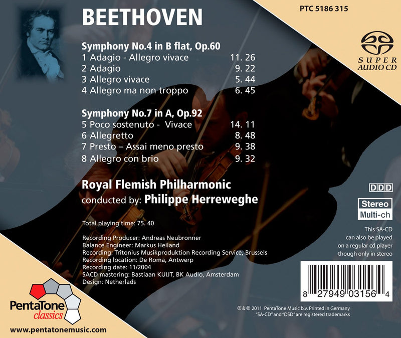 PENTATONEBeethoven: Symphonies No 4 & 7 / Herreweghe, Royal Flemish Philharmonic
