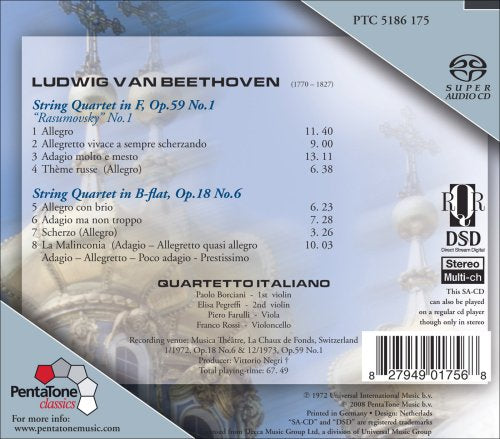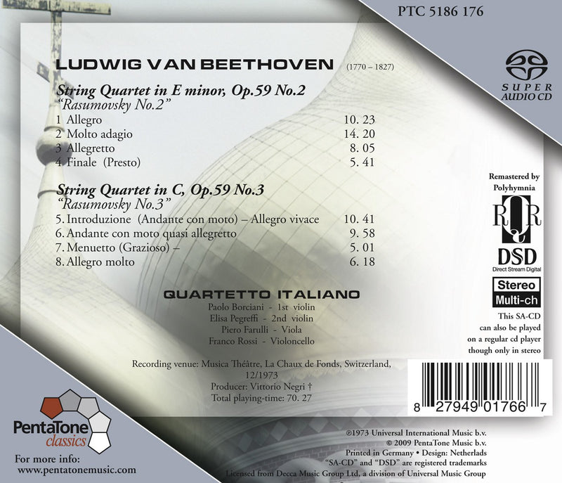 PENTATONEBeethoven: String Quartets Op 59 No 2 & 3 / Quartetto Italiano