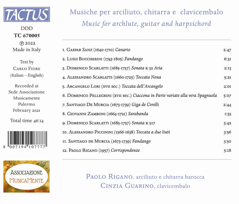 TactusMusic for Archlute, Guitar & Harpsichord / Rigano, Guarino
