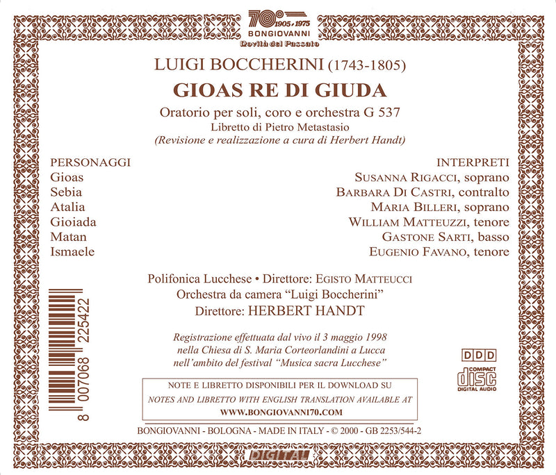 The Oratorio Gioas re di Giuda, “a Sacred Drama,” was probably the first important symphonic-choral work by Boccherini, composed during the years...