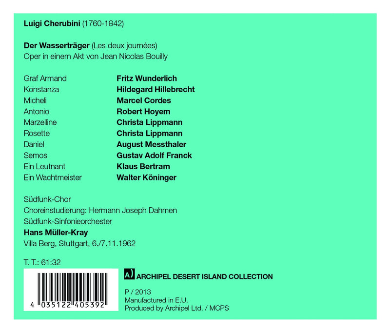 Walhall Eternity SeriesCherubini: Les deux journées (Sung in German) [Recorded 1950