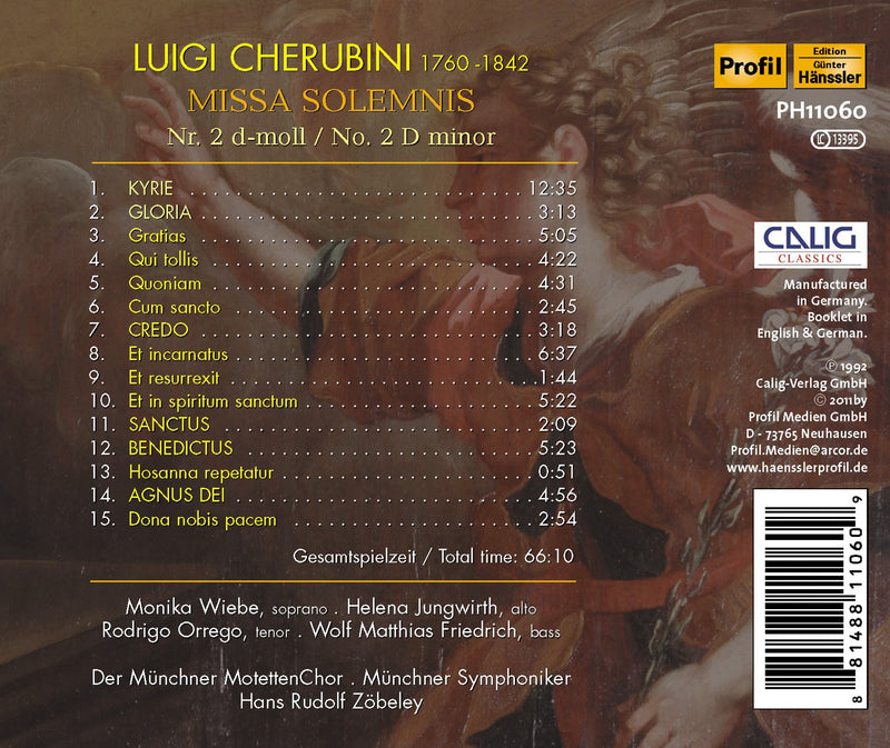 ProfilCherubini: Missa Solemnis / Munich Motet ChoirCHERUBINI Missa Solemnis No. 2 in d • Hans Rudolf Zöbeley, cond; Monika Wiebe (sop); Helena Jungwirth (alt); Rodrigo Orrego (tenor); Wolf...
