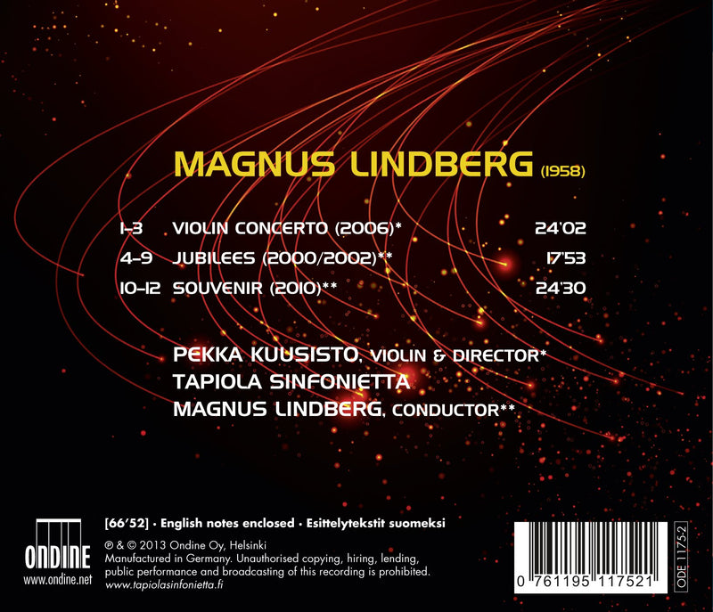 OndineLindberg: Tempus Fugit & Violin Concerto No. 2 / Lintu, Zimmermann, FRSOMagnus Lindberg (b. 1958) is among the leading figures in today’s contemporary music internationally. This new release by the Finnish Radio Symphony...