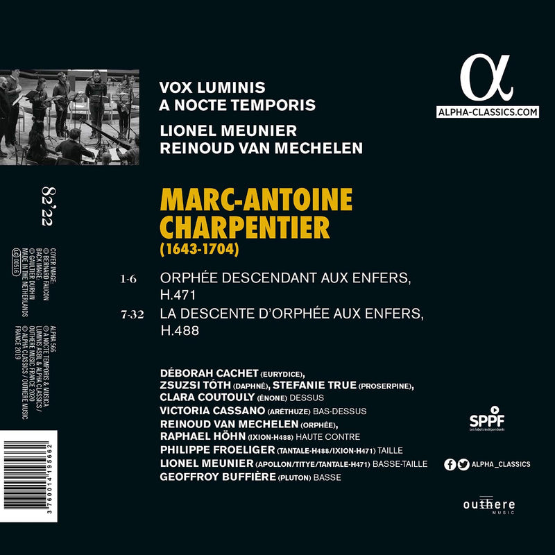 AlphaCharpentier: Orphee aux enfers / Meunier, Vox Luminis, A Nocte TemporisThe Orpheus myth was as important for the birth of opera in France as it had been in Italy. In 1684, Charpentier...