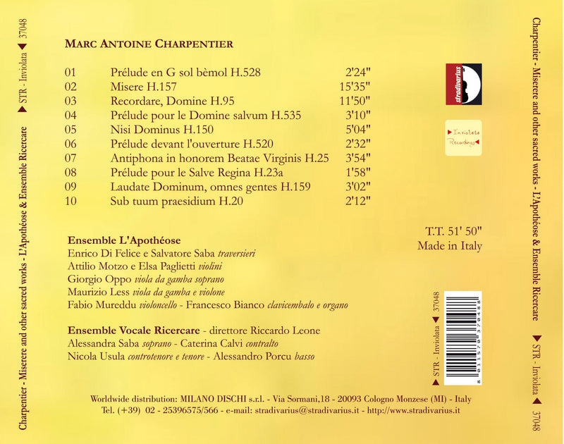 StradivariusCharpentier: Miserere & Other Sacred WorksMarc Antoine Charpentier (1643-1704) was never as famous as his contemporary Jean-Baptiste Lully. He never was a court composer, and did not...