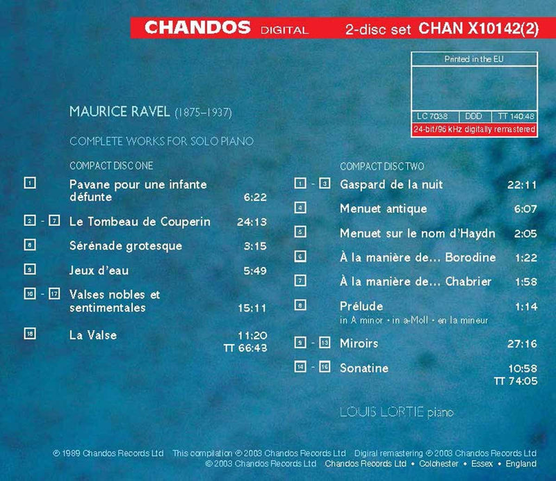 ChandosRavel: Complete Music For Solo Piano / Lortie