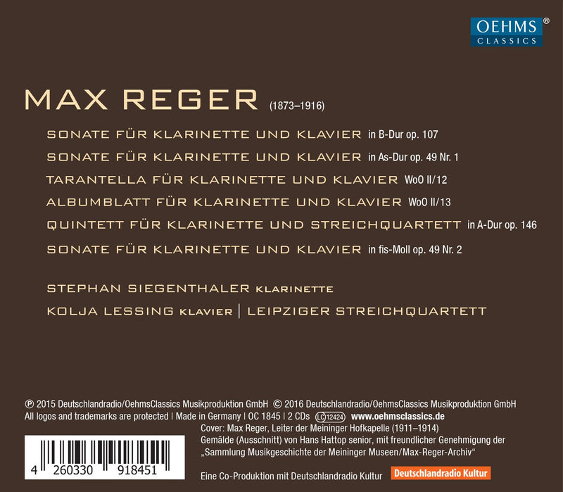 On SaleOehms ClassicsReger: Complete Chamber Music for Clarinet / Siegenthaler, Lessing, Leipzig String Quartet