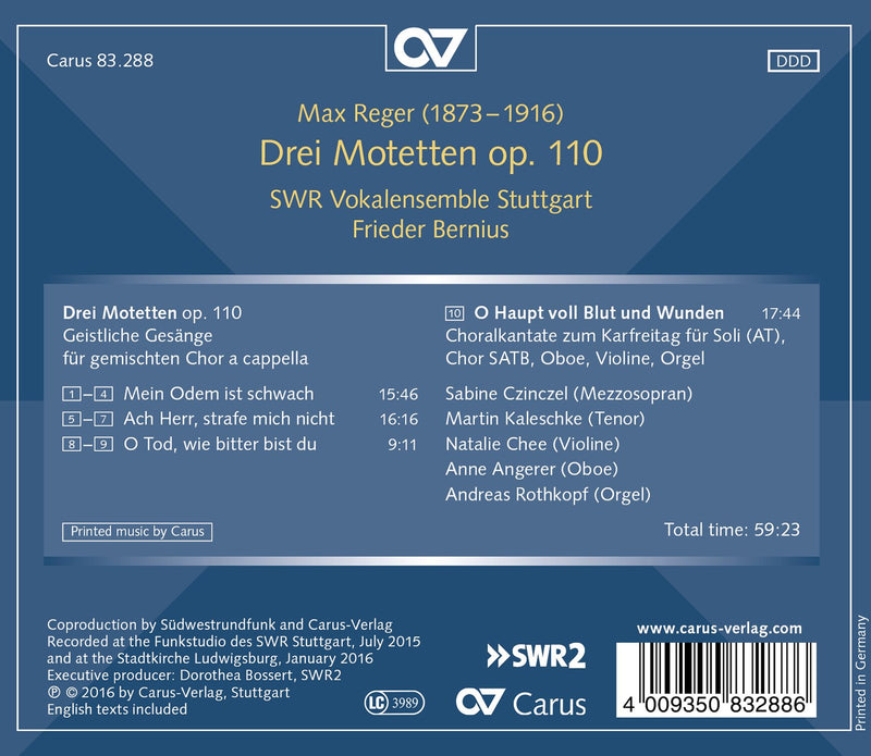 Commemorating the centennial anniversary of Max Reger’s death, this new release contains Reger’s Three motets Op. 110 and his Chorale cantata “O...