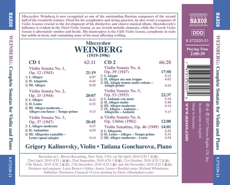 NaxosWeinberg: Complete Sonatas for Violin & Piano / Kalinovsky, Goncharova