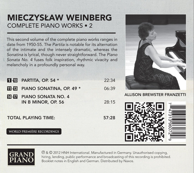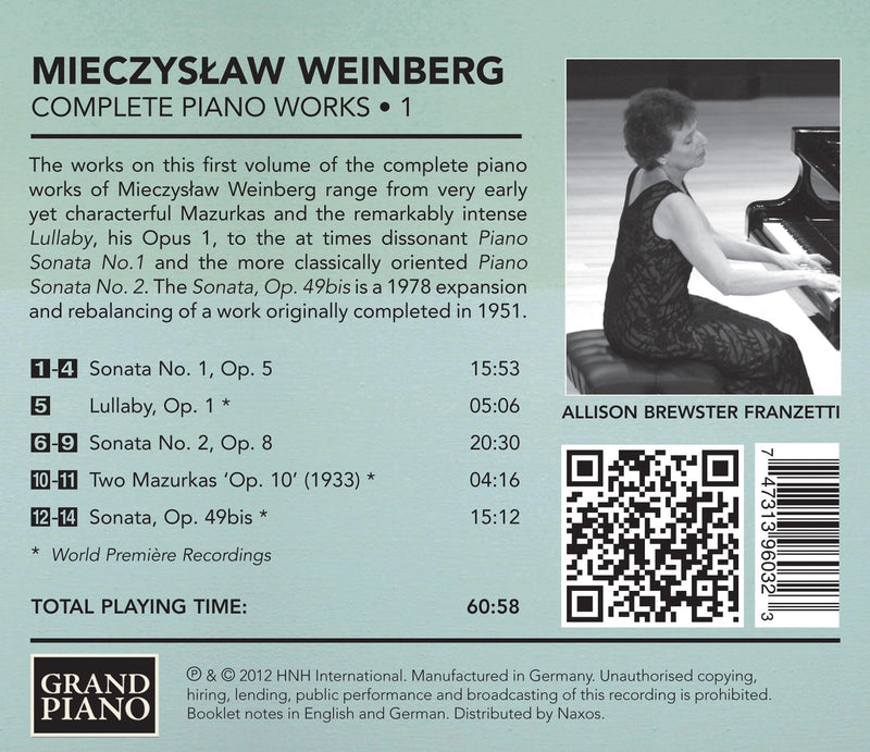 First complete set of these works on one disc. Marina Tarasova has established herself as an authority in the music of Weinberg...
