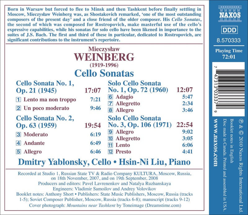 Weinberg: Cello Sonatas / Yablonsky, Liu