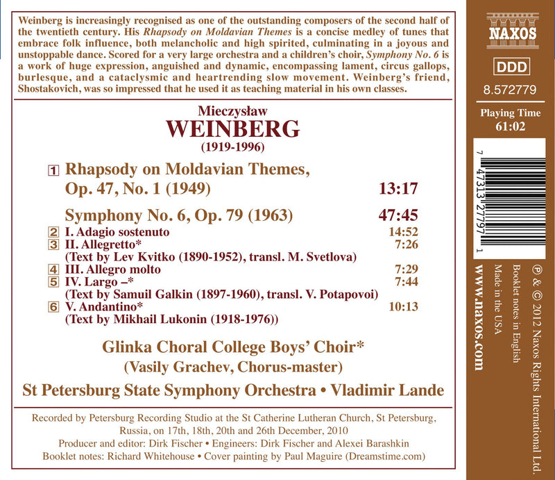 WEINBERG Rhapsody on Moldavian Themes. Symphony No. 6 • Vladimir Lande, cond; Glinka Choral College Boys’ Ch; St. Petersburg St SO •...