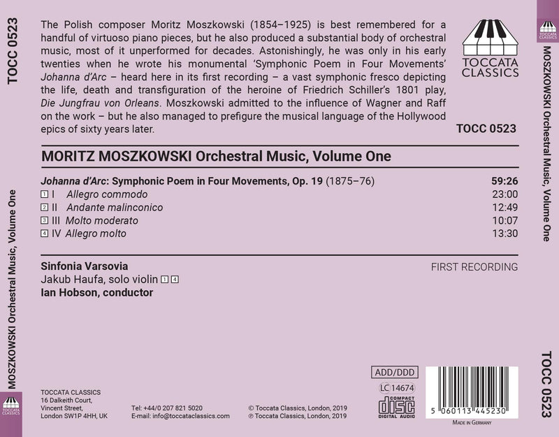 ToccataMoszkowski: Orchestral Music, Vol. 2 / Varsovia, HobsonThe Polish composer Moritz Moszkowski (1854–1925) is best remembered for a handful of virtuoso piano pieces, but he also produced a substantial...