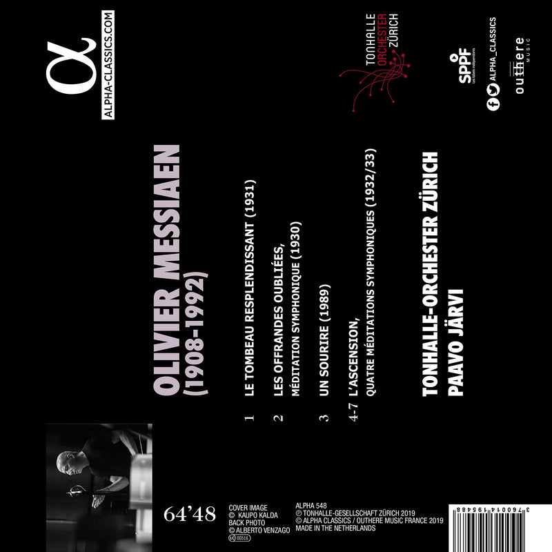 Paavo Järvi inaugurates his new contract as conductor of the Tonhalle Orchestra in Zurich with a programme devoted to Messiaen. Alpha Classics...