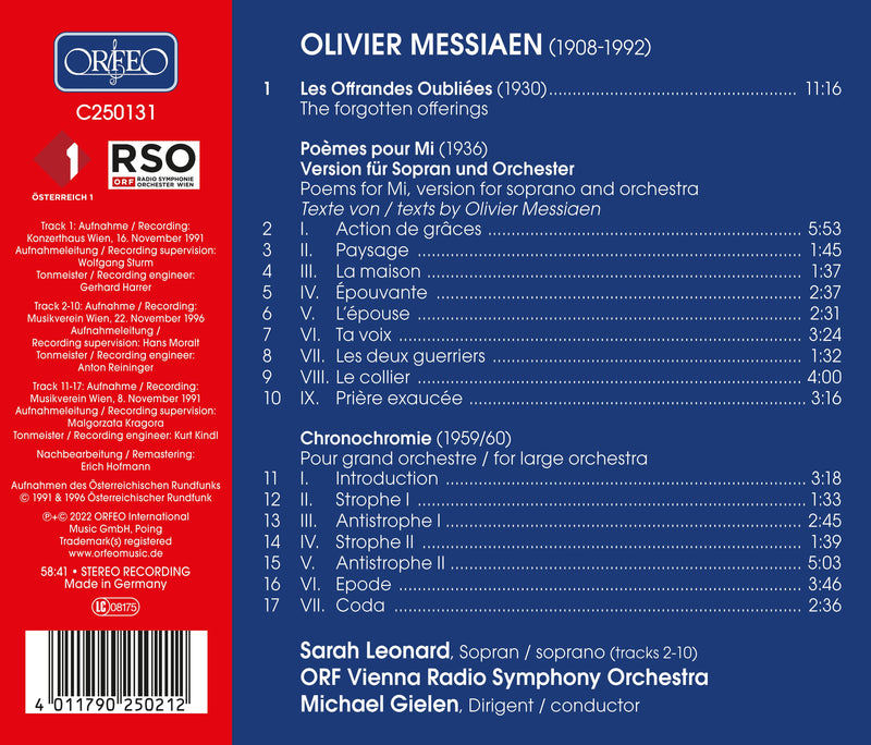 th century bird illustrations by Olof Rudbeck. It is unfortunate that we lose these in this re-release, but with a significant number of Messiaen CDs appearing with birds on the cover it is understandable that the designers went for a different look. Fortunately, even in this now budget '7 CDs for the price of 3' box, we get Anders Eckenberg's excellent booklet notes pretty much as they appeared on the original releases. The musical content is preserved and enhanced with the addition of the three works which were discovered after Messiaen's death, and disc 7 even includes the birdsong recordings which were on the original volume 6, and Dr. Gustaf Aulén's descriptions of each bird are included at the end of the booklet. No-one will be disappointed by the chunky booklet which makes up much of the weight of this box, and the texts are worth its price on their own.