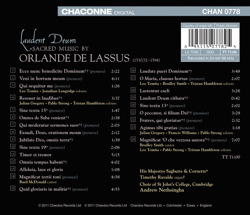 Conifer RecordsOrlando Di Lasso: Regina Coeli, Etc / Marlow, Cambridge