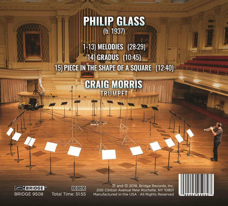 Bridge RecordsGlass: Three Pieces in the Shape of a Square / MorrisCraig Morris, former principal trumpet player of the Chicago Symphony Orchestra, has recorded brilliant solo trumpet versions of three Philip Glass classics....
