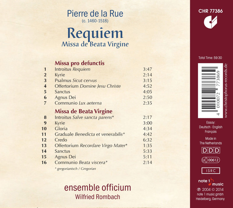 Pierre de la Rue is one of the great Franco-Flemish Renaissance composers. His works were known throughout Europe during his lifetime and...